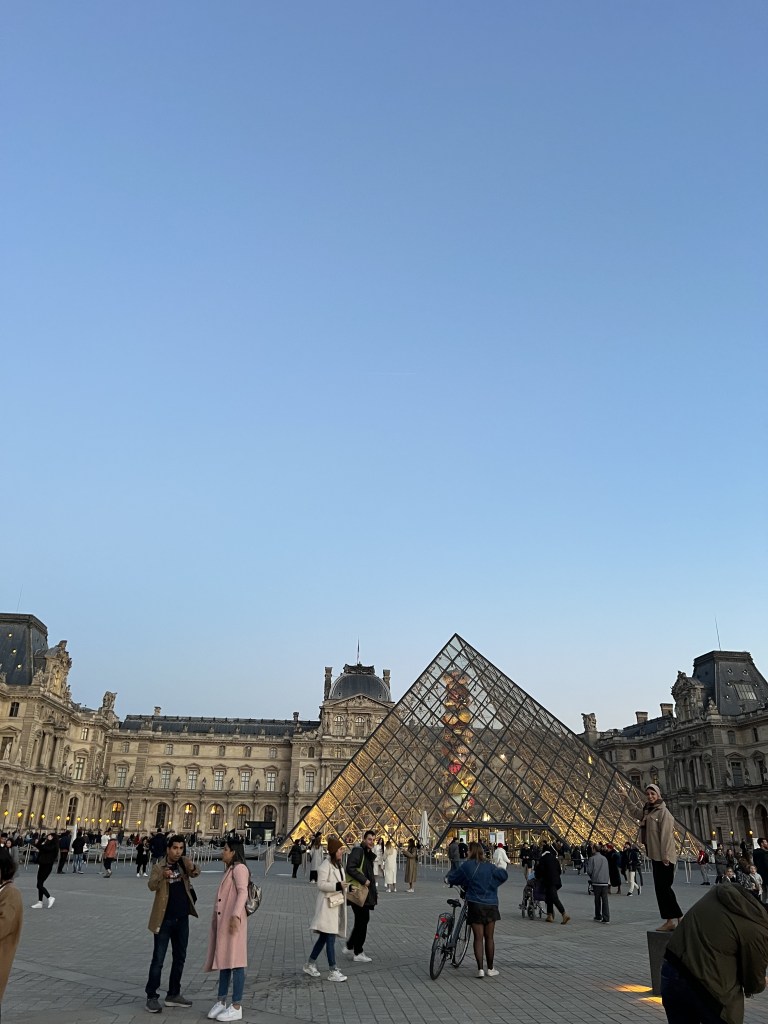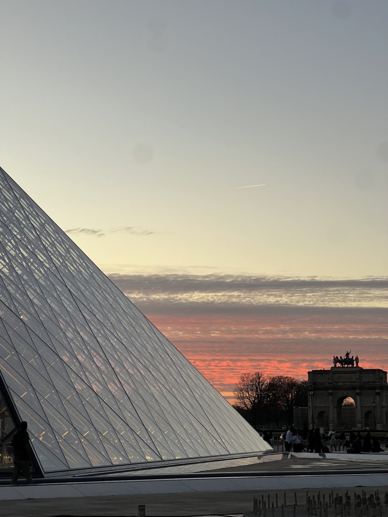 The sunset went off like no other – and to be there in that moment, with my best friend, in freaking PARIS!!!? I was overwhelmed with gratitude in every way. My soul was at peace. In that moment there was absolutely nothing other than love flooding my being. Everything that day was better than expected and to reach the Louve at the very moment of a pink and orange sky sent me soaring.