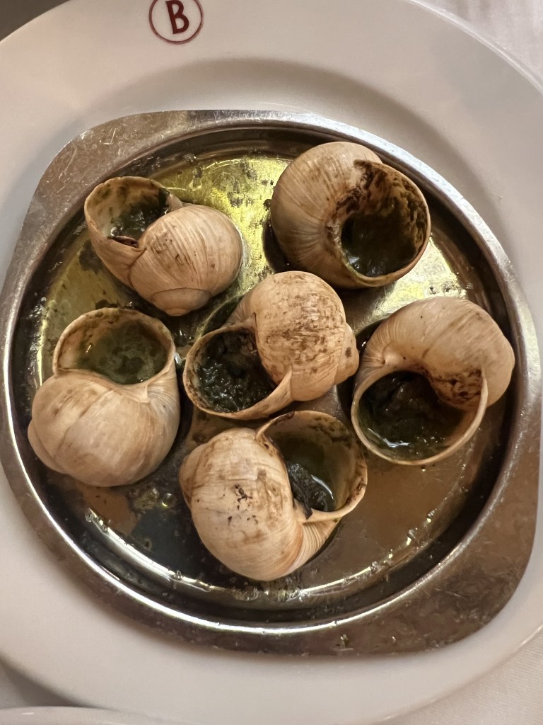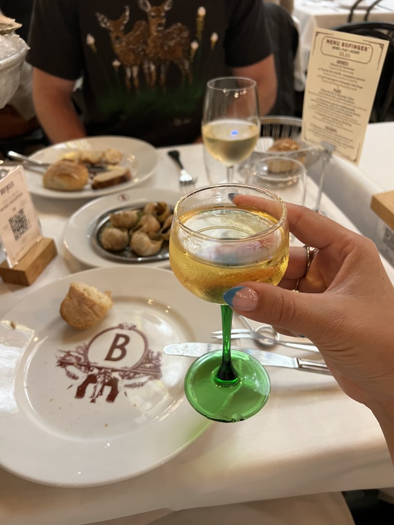 For our last Paris supper, we stopped at a restaurant called Bofinger not far from the Airbnb so we could grab our stuff and head to the airport as soon as we were finished. The food was delicious and comforting. We ordered escargot and oysters for appetizers. Now these oysters? Phenomenal. Definitely better than the ones at Clamato. They are up there with some of the best I’ve had in San Juan, Washington. They were flavorful and full of texture. I’m glad Carson got to experience these as this weekend was his first time exploring oysters to begin with. We also had some really good wine, and both of our entrees were mouthwatering. It was a good last hurrah to our Paris getaway.