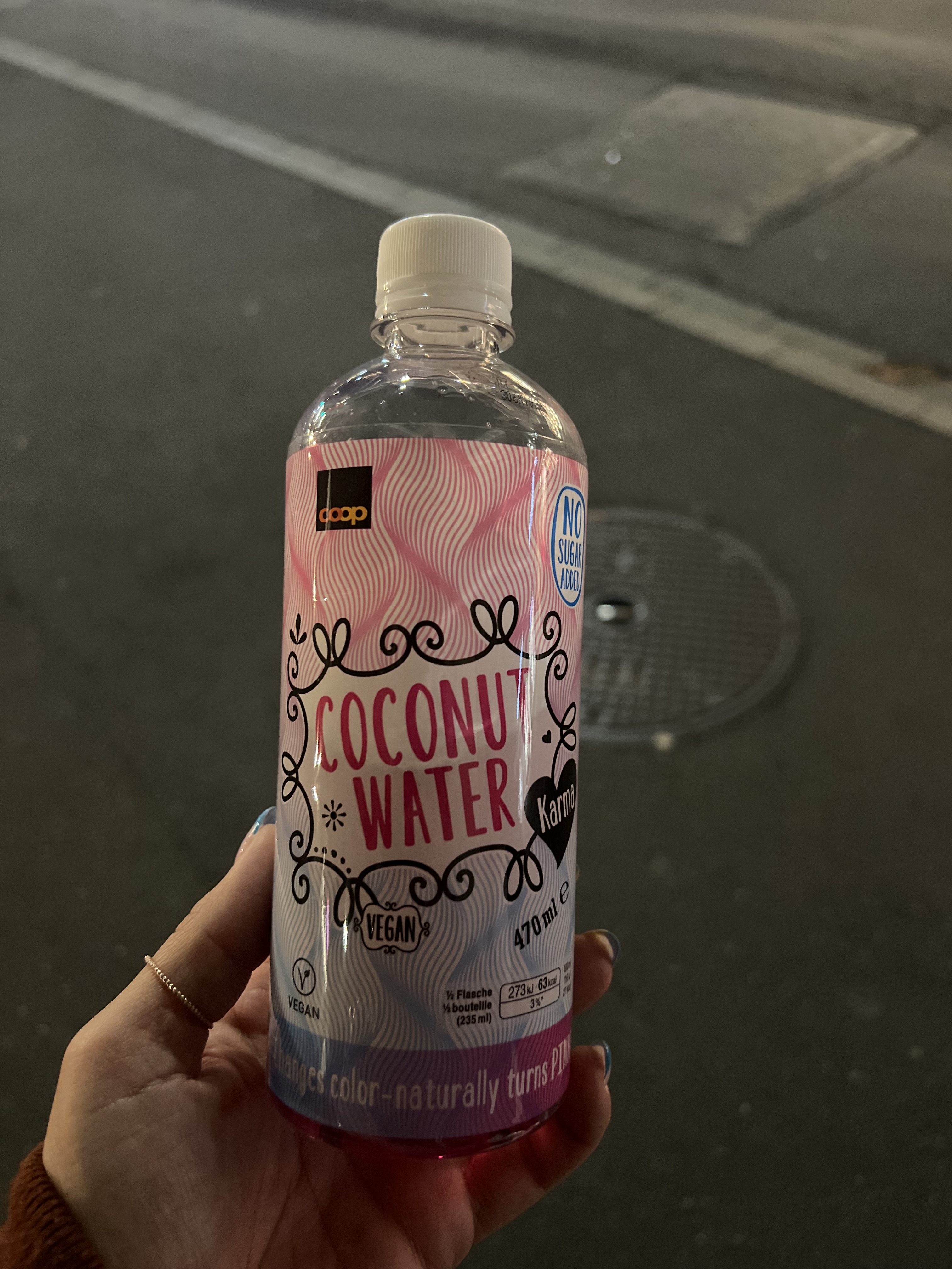 After dinner we walked around to work that cheese off and then stopped by a grocery store, Coop (pronounced like “cope”) to gather some goods to keep at the Airbnb since we were a bit far from town. This is when I discover their coconut water. Why I’m a coconut water hoe is another story for another time, because I haven’t always been this way – but know it’s for the betterment of my health and this coconut water was FANTASTIC.