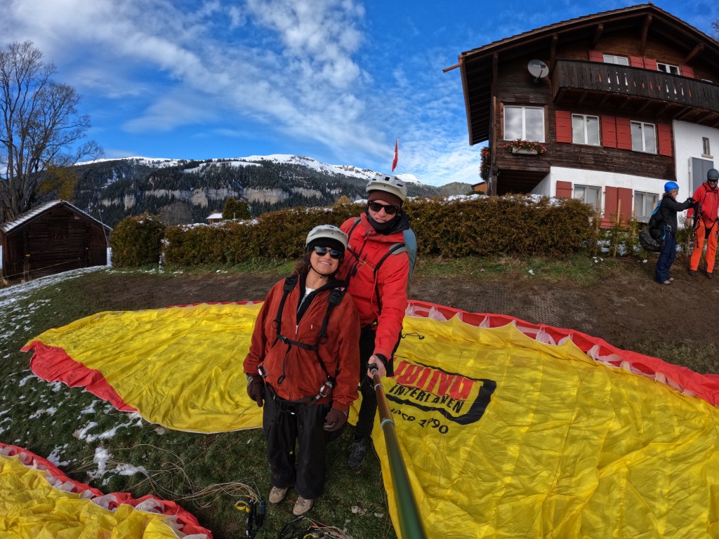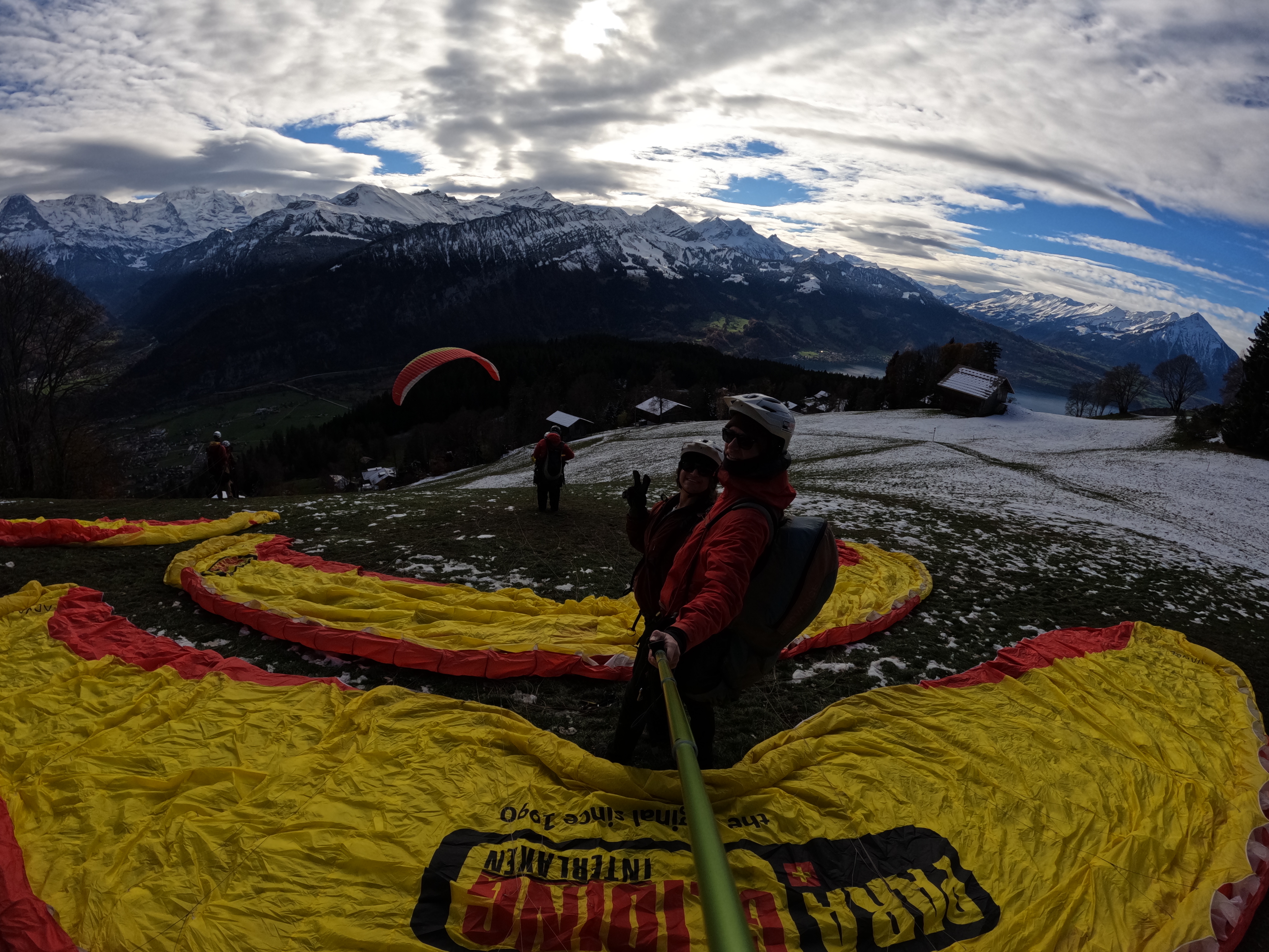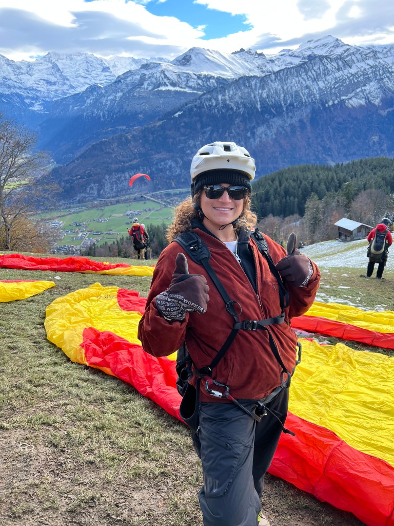 We take off into the air with a running start and then it was smooth sailing. My pilot let me take control of the wing, it was super cool to actually paraglide on my own – I may have to get certified at some point, hehe. Then I told him, “I like rollercoasters, so feel free to go crazy.” He took that information and flew with it (see what I did there?). He warned me before that we’re not allowed to scream just because of the nature of the layout of the town… everyone and their mothers would’ve heard. Once I “copy that” he starts a whirlwind of twists and turns and drops and my paragliding dream has officially been fulfilled. The landing was easy, we landed in a large field right next to some cows! It was fun to watch Eva land as she was shortly behind me.