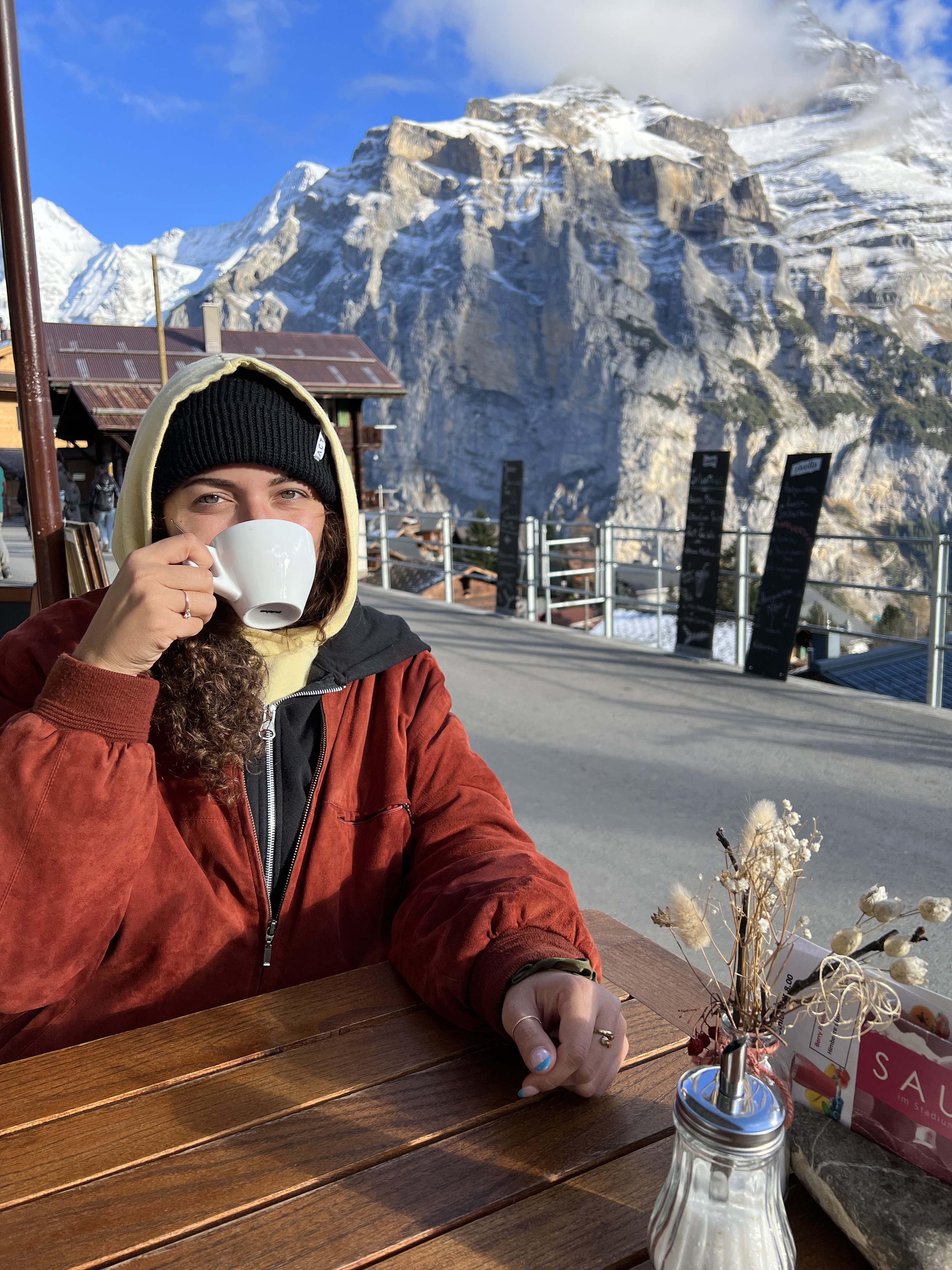 After returning our gear, we stopped at a cute little cafe in Murren. We sat outside to take in the breathtaking view and watch the paragliders as we fueled our bodies with the most delicious soup we had that trip – spinach soup.