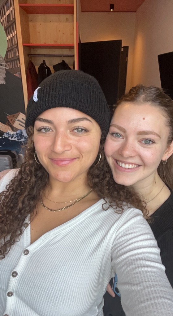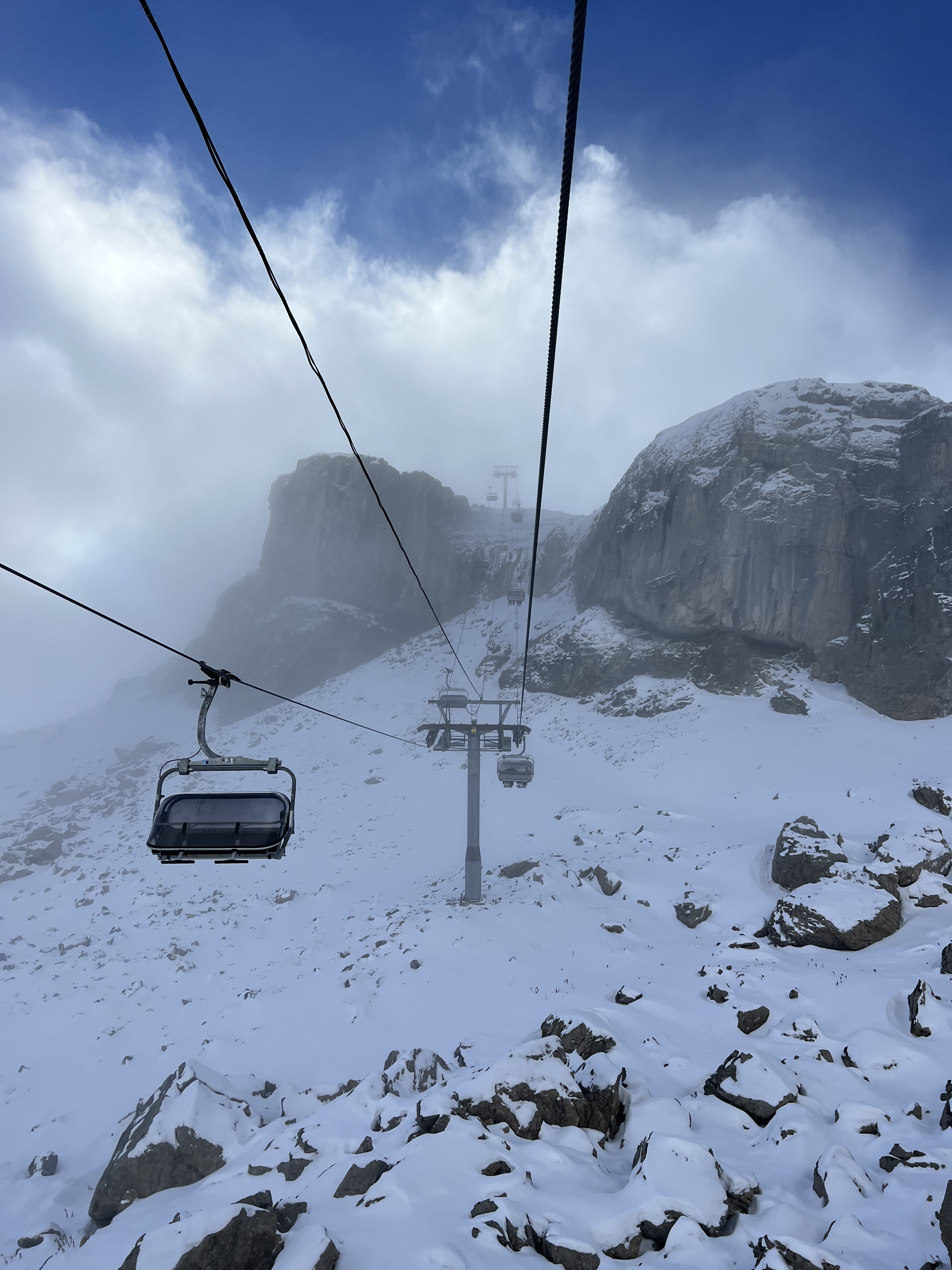 Prior to coming skiing we looked up the difficulty of the slope and although this mountain is known for the steepest slopes in Europe, it said beginner. As we approach the slope and only see an immediately drop down with no visibility of the rest of the run, we started to question what beginner meant to the Swiss people, haha. I have been skiing for about a year now and have had a decent amount of experience on various beginner, intermediate, and even accidental black slopes – but Eva hadn’t skied since she was 9 years old.