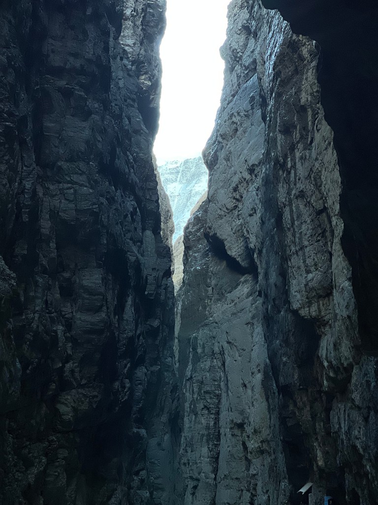 We train to Grindelwald, again with STUNNING views. We arrive and quickly learn that a majority of the town was closed for the season. We decided to go to Glacier Canyon and walk through he caves the glaciers left behind. It was super dope, and along our walk we saw people bungee jumping from the top of the canyon. As we continued our walk we ran into the same friend we met while skiing and his wife! They had just done the jump and said it was liberating, but they had booked online prior so unfortunately it wasn’t something we could do same day.