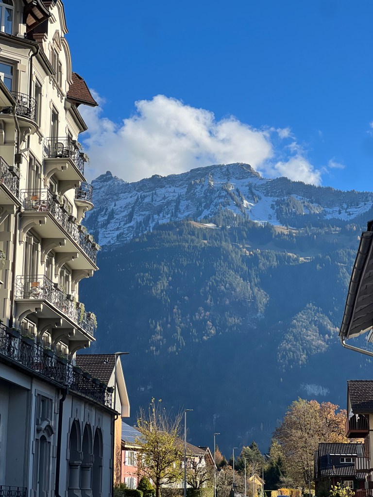 We get to Interlaken and hop on the bus to go to our Airbnb which was located about 20 minutes outside of Interlaken in a small little town called Iseltwald. Again, the views are absolutely insane. Poppin. Interlaken is where it’s at. We get off the bus and realize our Airbnb is a slight little hike into this quiet little neighborhood, so we get our happy legs in motion with our luggage and get to work up the hill. Mid way up we realize the view, and we’re like HOLY CRAP. Then we get to our Airbnb and step on the balcony and we are MINDBLOWN.