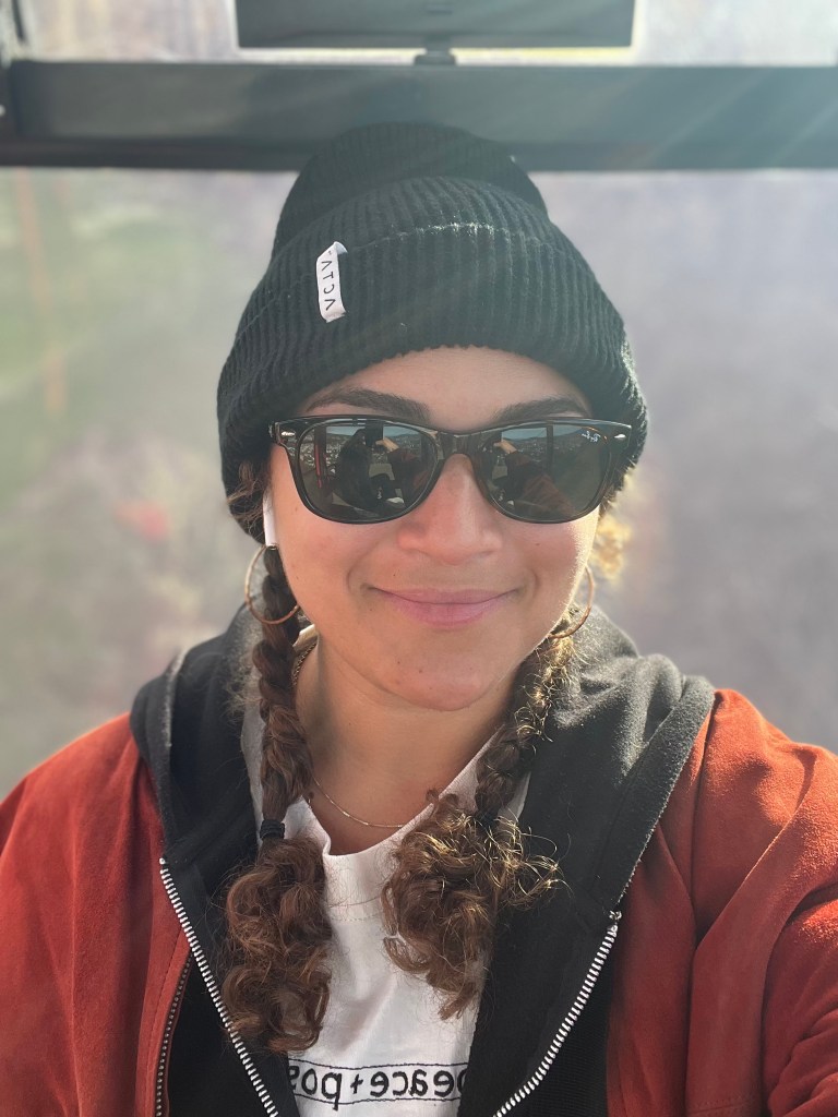 I carefully made my way down the run and quickly realized that it was indeed a beginner slope, and like the pro I am *wink* – I didn’t fall once. I was proud and excited. The slope did have its intimidating moments that would not be the best for someone who’s basically skiing for the first time (Eva). There were two larger drops that would have been comical to watch her go down as a first-timer, but considering there were some narrow parts and other risk factors – it wasn’t worth it. So we decided to hangout at top for a bit, soak in the views and take some pictures and then head back down to enjoy the rest of the afternoon.