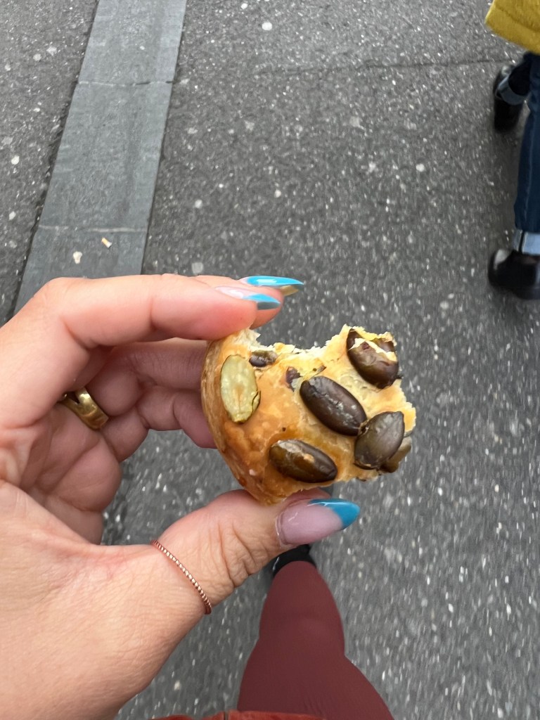 We start at Chapel Bridge, taking a quick walk through and a few selfies of course. We walk through Old Town and then make our way towards a Lion memorial. On our walk there we are desperate for a bathroom and quickly stop into a cafe to relieve ourselves and also grab a little snack. The woman is extremely friendly and tells us how delicious the scones are, so Eva gets two (a potato and a cheese) and I just get one cheese. Once we step out of the door and continue our journey, I take my first bite and I look at Eva and say, “I’m going back and I’m getting at least two more.” Granted I had only tried the cheese one, but it was delicious. It tasted like Brazilian cheese bread on crack.